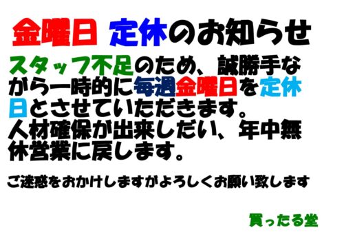 2026.1.12定休日のお知らせ買ったる堂はこんなお店です
