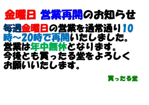 金曜日の営業再開のお知らせ